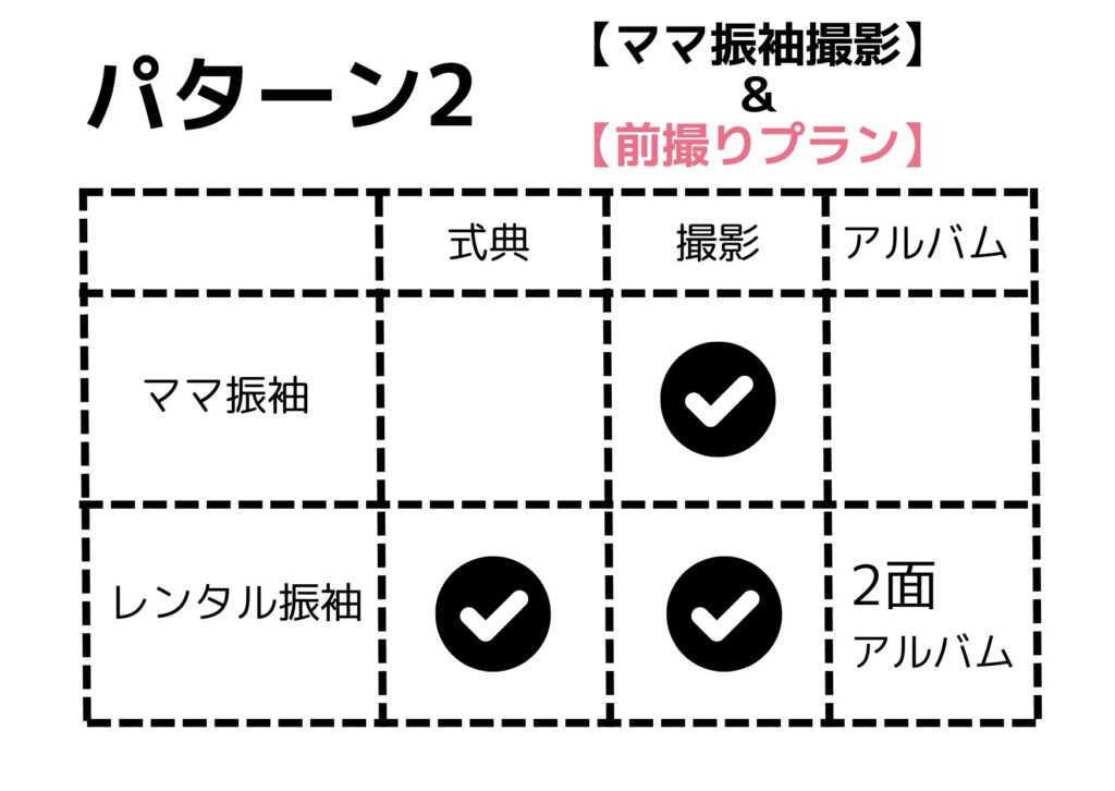 - 撮影もレンタルも考えている方→ ママ振袖と当店の振袖を組み合わせたパターン