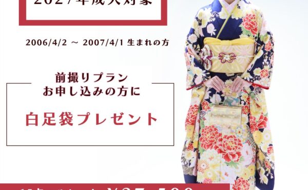 2025年6月23日終了したキャンペーンSTORE STAFF 2026年成人・2027年成人 振袖予約会2026年成人・2027年成人 振袖予約会開催! 振袖一式のレンタルと前撮りもセットにできるプランもご用意しております。 まずは一度ご相談・ご試着にいらしてください。 ご来店予約はLINE▶︎・予約フォーム […]